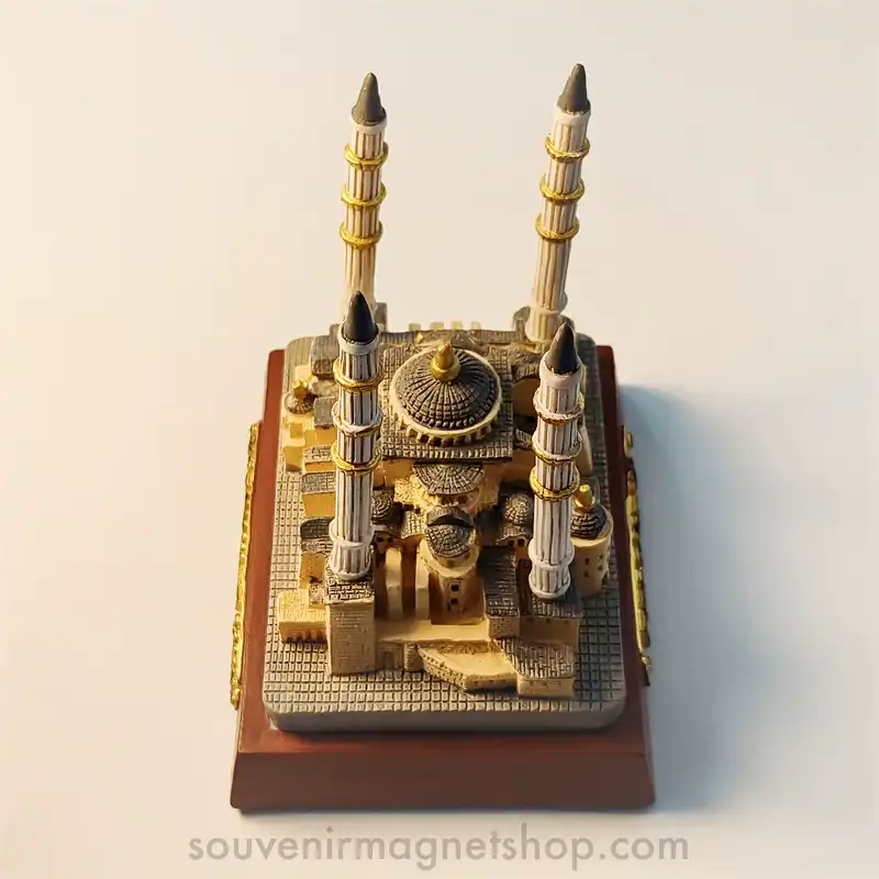 Crafted from high-quality 3D resin and meticulously hand-painted, it showcases the mosque’s magnificent domes and six towering minarets in stunning detail. Measuring approximately 10.6 x 8.6 x 11.8 cm, this piece beautifully captures the essence of Ottoman architecture.