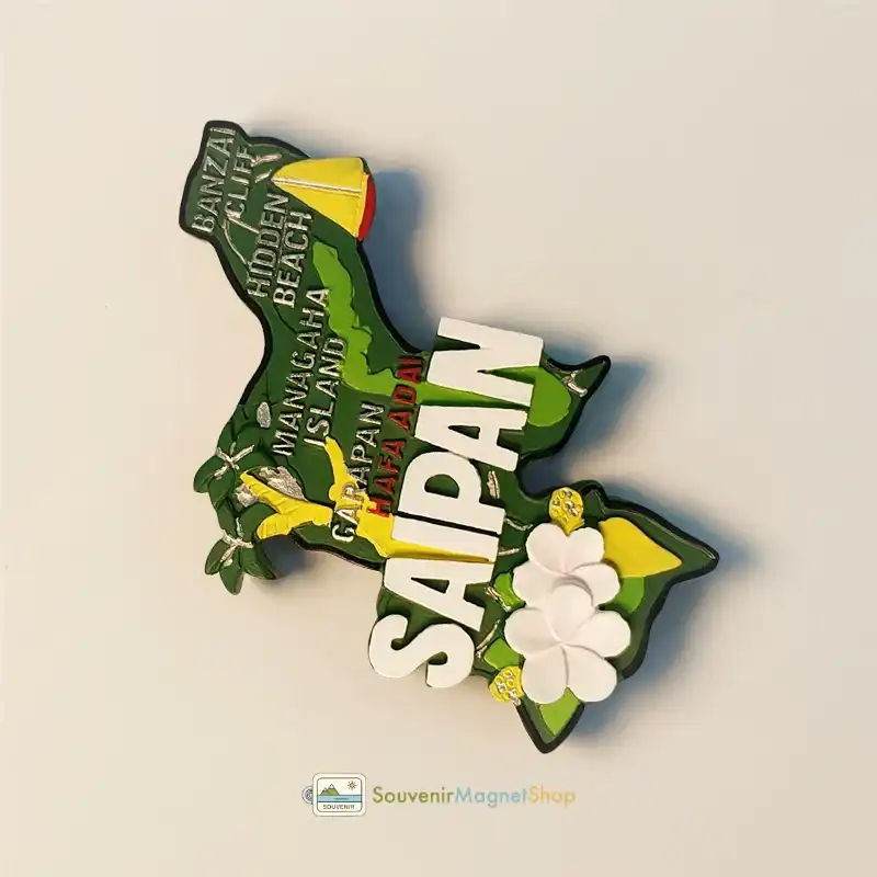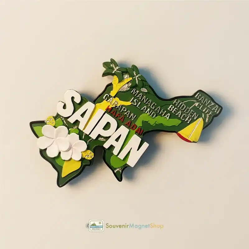 Adorn your refrigerator, office magnetic board, or any metal surface with this charming piece, creating a constant reminder of Saipan’s allure. It serves as an imaginative souvenir for globetrotters, a valuable addition for collectors, or a delightful gift for anyone enchanted by island getaways.