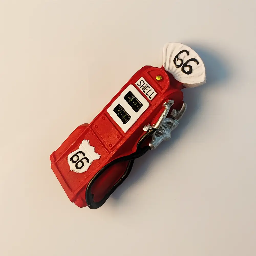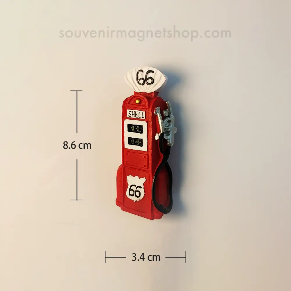 Commemorate your journey with this USA Route 66 Shell Gas Station fridge magnet. Perfect travel souvenir for road trip enthusiasts and collectors.