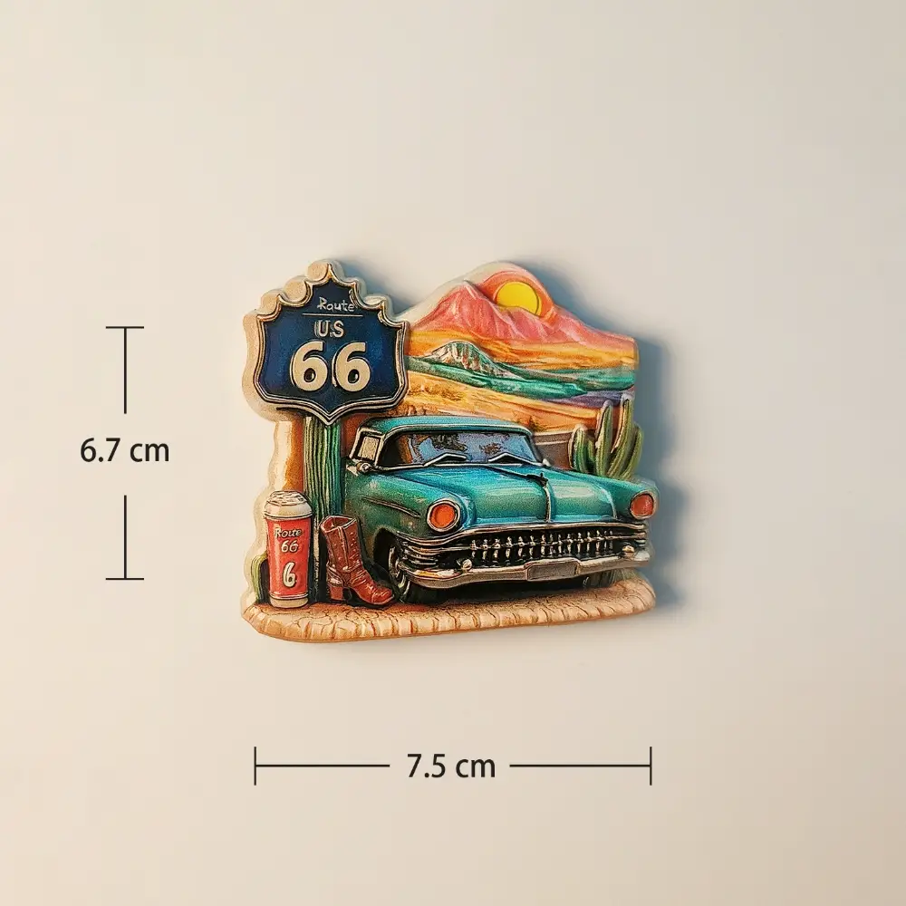 Perfect for decorating your fridge, office, or any magnetic surface, this magnet is a meaningful gift for travelers, collectors, or anyone who loves road trips and the classic Americana spirit.